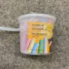 Strassenkreide 20er-Set im praktischen Eimer – je 10 cm lang, perfekt für bunte Straßenkunst. Kreativität entfalten, trotz beschädigtem Tragegriff!