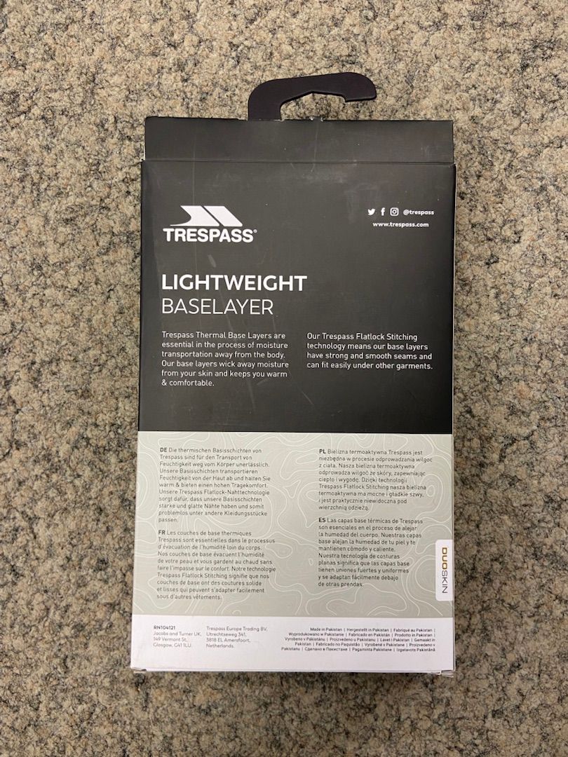 Die thermischen Basisschichten von Trespass sind speziell darauf ausgelegt, Feuchtigkeit vom Körper wegzutransportieren, um Sie warm und trocken zu halten. Gleichzeitig bieten sie hohen Tragekomfort. Dank der Trespass Flatlock-Nahttechnologie sind die Nähte besonders stark und glatt, sodass das Oberteil problemlos unter andere Kleidungsstücke getragen werden kann, ohne zu scheuern oder zu drücken.