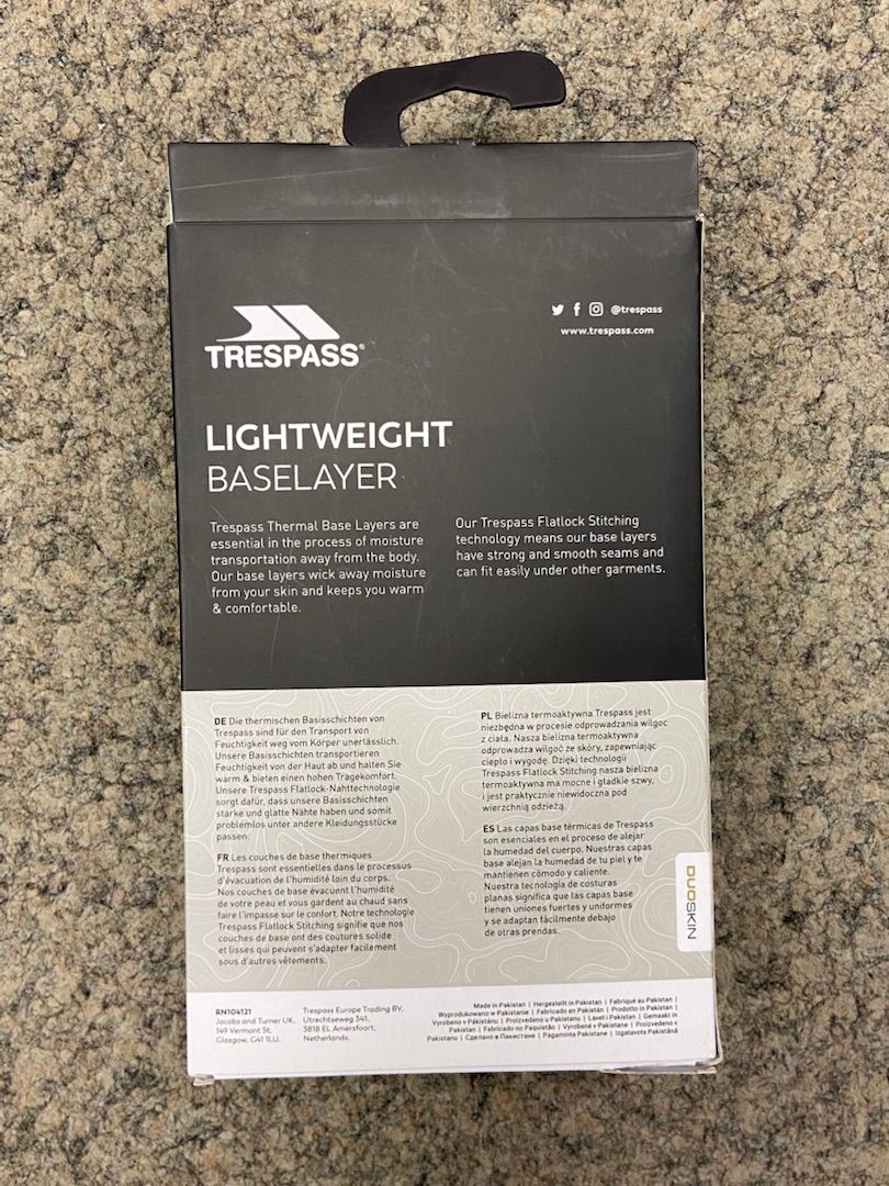 Die thermischen Basisschichten von Trespass sind speziell darauf ausgelegt, Feuchtigkeit vom Körper wegzutransportieren, um Sie warm und trocken zu halten. Gleichzeitig bieten sie hohen Tragekomfort. Dank der Trespass Flatlock-Nahttechnologie sind die Nähte besonders stark und glatt, sodass die Hose problemlos unter andere Kleidungsstücke getragen werden kann, ohne zu scheuern oder zu drücken.