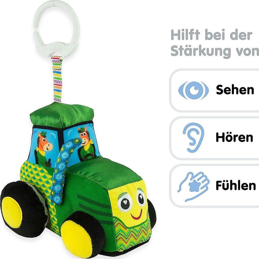 Mit dem Lamaze John Deere Traktor-Autositz- und Kinderwagen-Spielzeug wird jede Fahrt zum Abenteuer! Dieses liebevoll gestaltete Hängespielzeug kombiniert weiche Materialien, leuchtende Farben und kontrastreiche Muster, um die Sinne deines Babys spielerisch zu fördern.