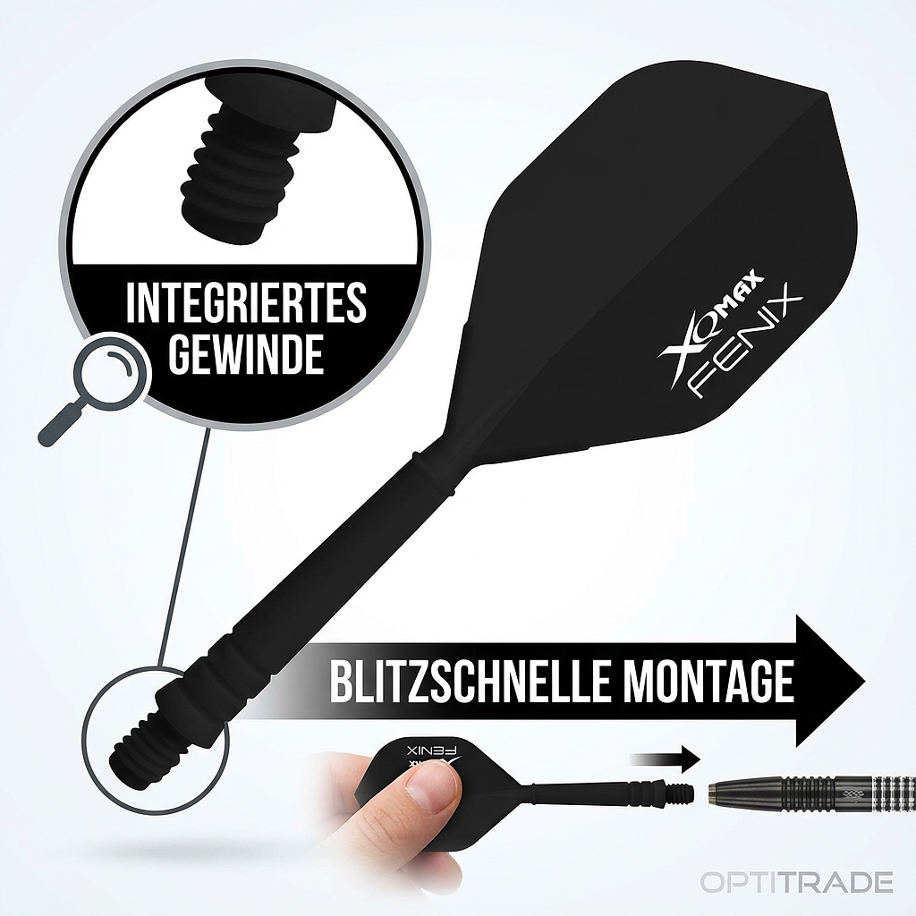 Der XQ Max Fenix Flight Shaft ist die ideale Lösung für alle, die Wert auf Langlebigkeit und einfache Handhabung legen. Die feste Verbindung von Schaft und Flight bedeutet, dass Sie keine losen Teile mehr verlieren, was die Lebensdauer Ihres Dart Zubehörs signifikant erhöht. Das einfache Einschrauben dank des integrierten Gewindes macht die Montage blitzschnell.