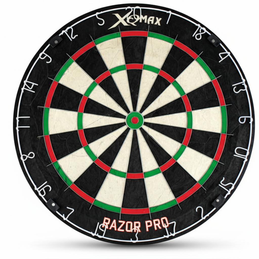 Zum Schutz der Wand und zur besseren visuellen Abgrenzung ist das Dartboard mit einer 4-teiligen Umrandung in elegantem Schwarz ausgestattet. Diese Umrandung fängt verirrte Würfe ab und sorgt für eine aufgeräumte Optik. Die Montage ist dank des mitgelieferten Befestigungsmaterials denkbar einfach; der Aufhänger lässt sich mühelos auf der Rückseite der Dartscheibe anbringen.