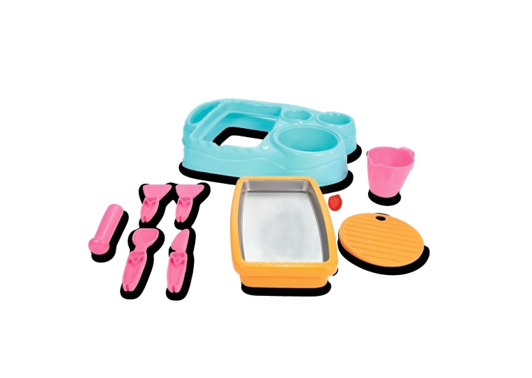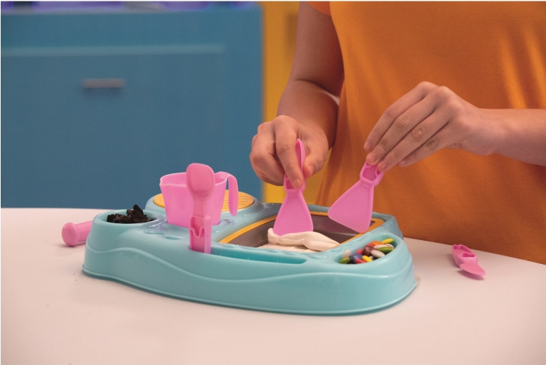 Mit dem ZAP CHEF Ice Cream Rolled Lab Set können Kinder ihr eigenes Eis ganz einfach selbst herstellen. Die Ice-Cream-Roll-Platte wird für 4–6 Stunden bei ca. –10 °C im Gefrierfach gekühlt. In der Zwischenzeit kann die Eiscreme nach eigenen Vorlieben oder mithilfe der beiliegenden Rezepte vorbereitet werden. Anschließend wird die flüssige Eiscreme dünn auf die gefrorene Platte gegossen, verteilt, abgeschabt und erneut ausgestrichen. In weniger als einer Minute entstehen echte Eisrollen.