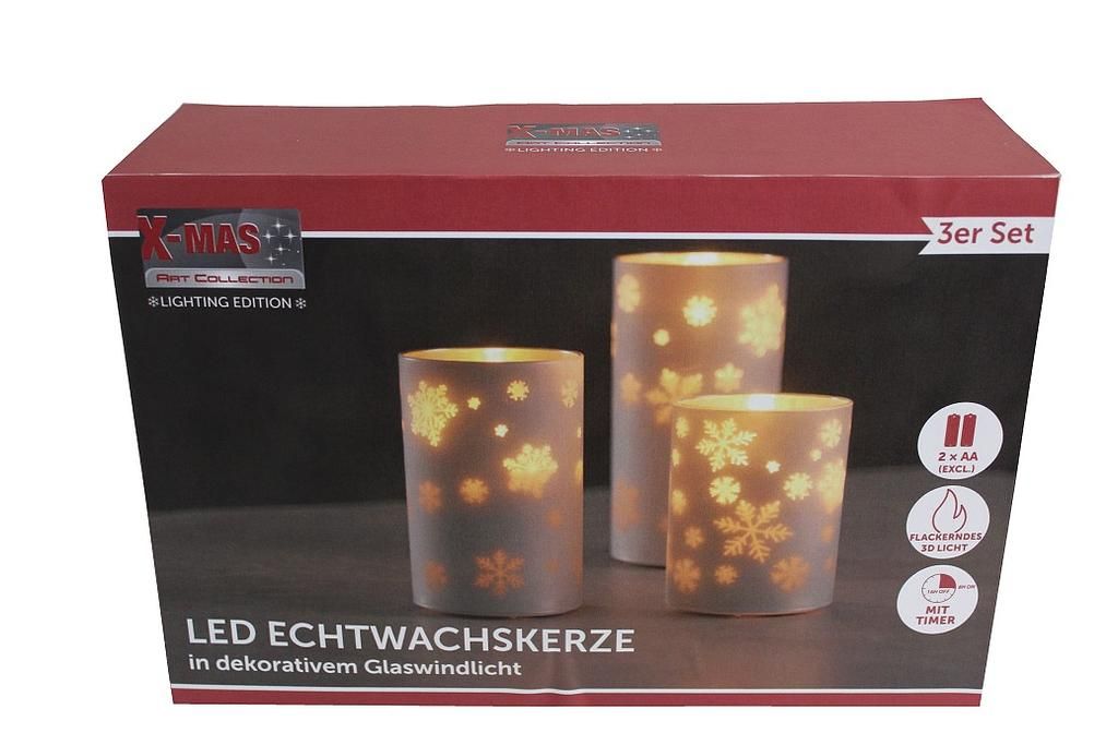 Art Collection Kerze im Glas mit Echtwachs 3D und Timer 3er Set